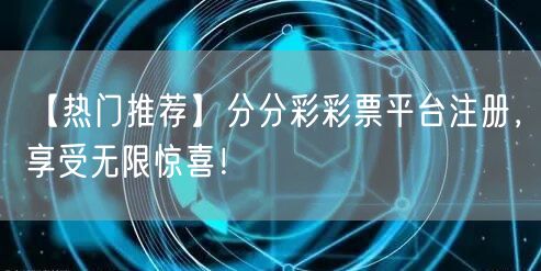 分分彩彩票平台为你提供了一个便捷、安全的购彩环境,让你轻松购买最热门的彩票游戏。现在就来注册平台,享受无限的惊喜和优惠吧!让我们一起体验彩票带来的乐趣和刺激,共同追求财富梦想!