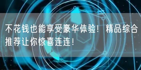 你是否觉得豪华体验总是需要花费大量的金钱?其实不然,即使不花费一分钱,也能享受到令人难以忘怀的豪华体验。今天,就让我们一起发现那些不花钱也能享受豪华的方式,通过精品综合推荐,一次次惊喜连连。